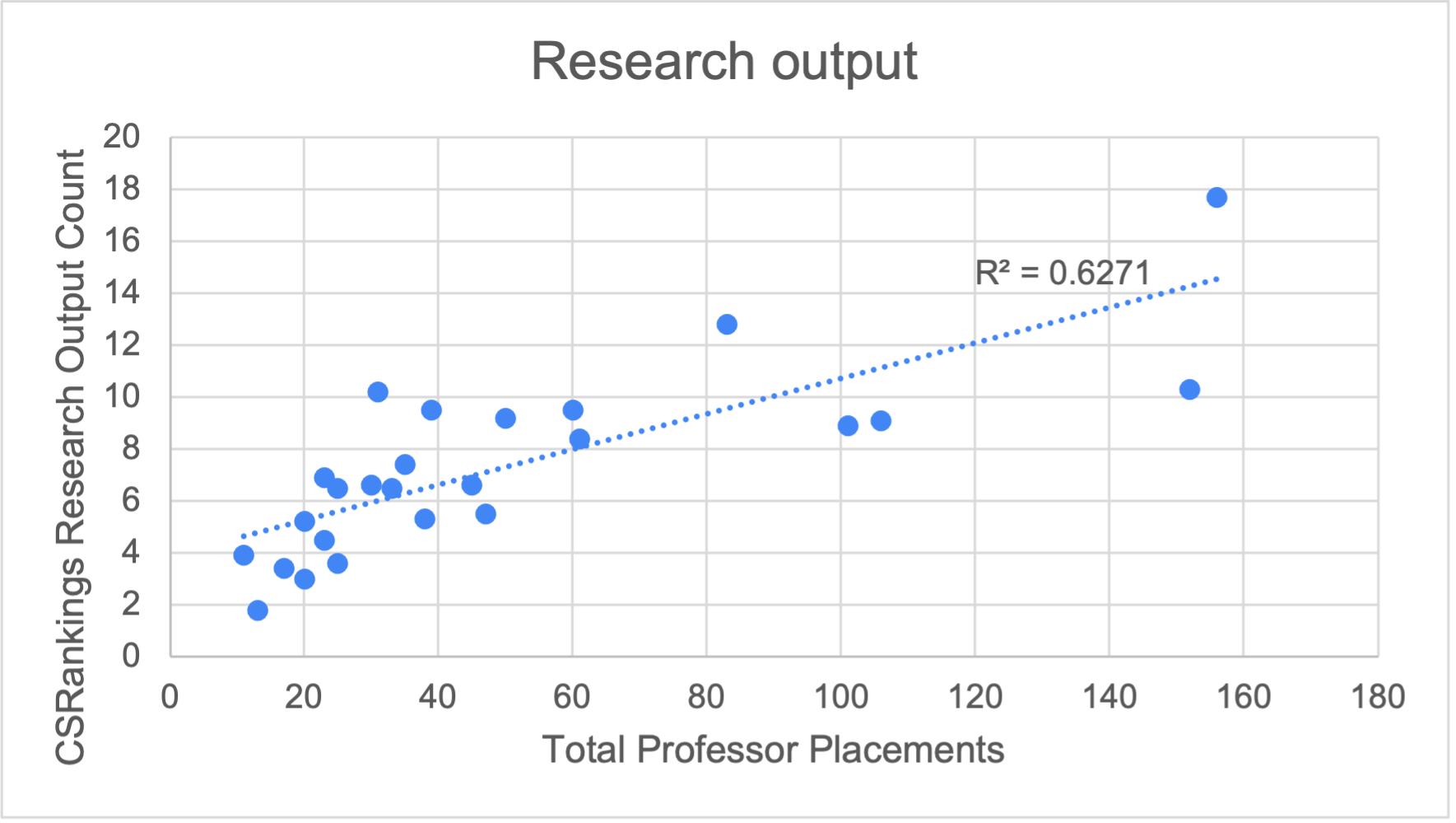 University rankings such as USNews can be gamed to account for its categories and also places a fair amount of preference of "peer score". CSRankings tries to alleviate these blackbox rankings by finding a merit-based way to rank universities. Though, this largely favors larger universities that have more students and thus a larger research output. Additionally, the impact of a paper is not well categorized. In this study, we aim to take into account both student impact and size normalization. Becoming a professor has particularly low odds. That being said, if a university is able to place PhD students into professorial roles consistently, that is quite the achievement. We say that magnitude is not enough, rather we investigate the role of normalized placements based on the number of degrees conferred.