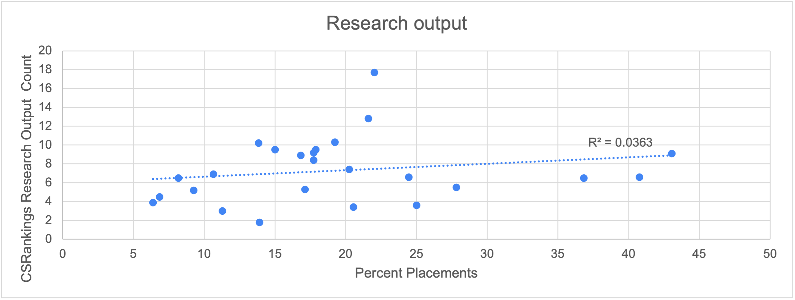 Why bother normalizing the placements at all? This data reveals nothing new. The rankings roughly follow USNews and CSRankings.